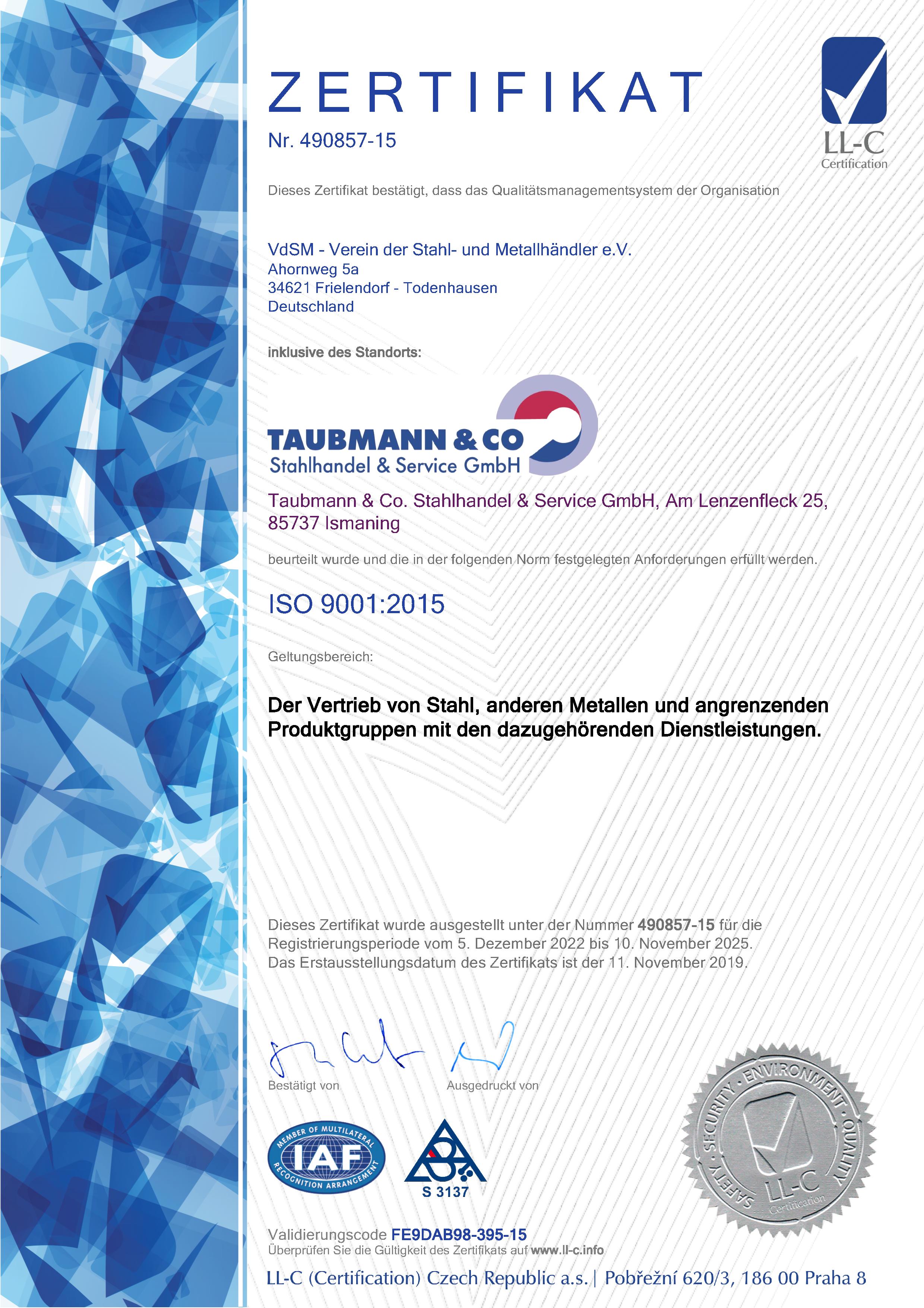 Das Managementsystem DIN EN ISO 9001 wird in unserem Betrieb regelkonform angewendet und von der Zertifizierungsstelle LL-C bescheinigt.